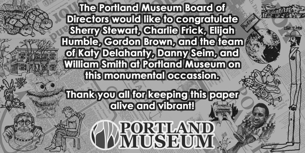 That promise was kept far beyond year number two, with countless people and groups contributing to The Portland Anchor’s continued success to this day. While not every one of these people could be individually thanked in this issue, we dedicate it to all their hard work, passion, and dedication to Portland over the Anchor’s 50 years. To every name that has graced The Portland Anchor’s pages, and to every set of eyes who has read them: thank you!