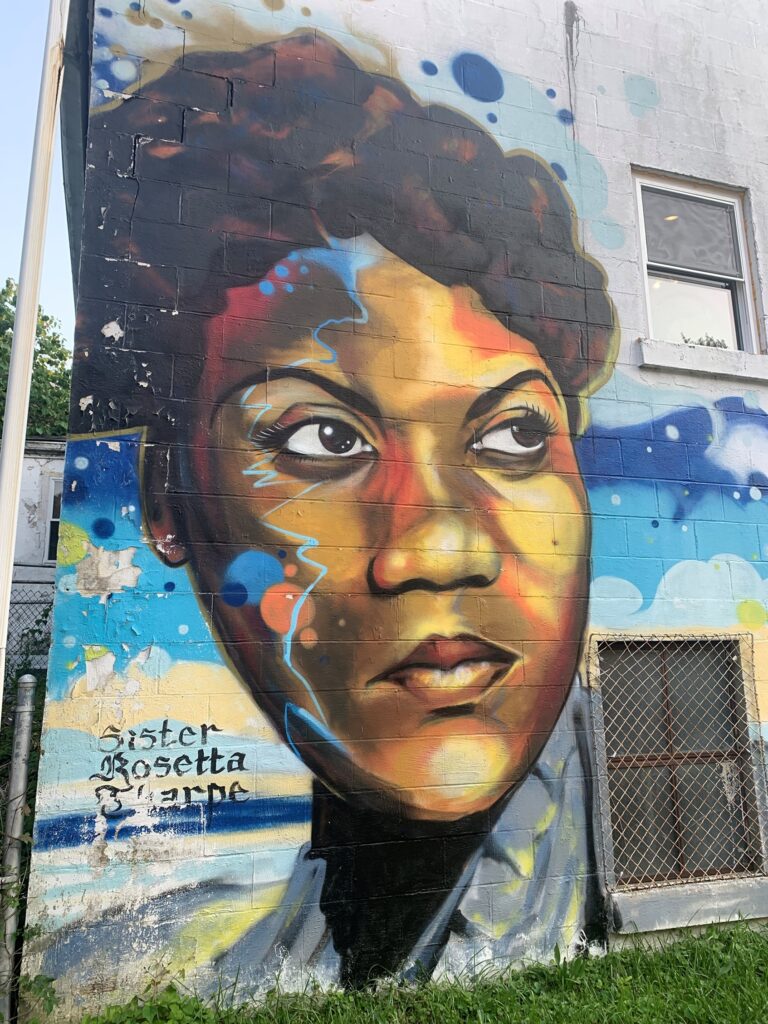 For the past couple years, fans of independent and underground music from all over Louisville have discovered a hidden treasure near 20th and Main Street in Portland: the Rosetta Chapel, a performance space which has hosted dozens of bands of all varieties, and also happens to be the home of Daniel Barber, a multi-media sculpture artist. He started out having dance parties with his friends, and the scene organically expanded into serving as a home for live music. The home’s namesake, Sister Rosetta Tharpe, is the “godmother of rock and roll,” the gospel blues singer and guitar innovator from the 1930s and ‘40s who influenced the likes of Little Richard, Johnny Cash, Tina Turner and Elvis Presley. The striking mural on the side of the church was created by prominent local artist Damon Thompson, whose work can be found on urban spaces all over Louisville.